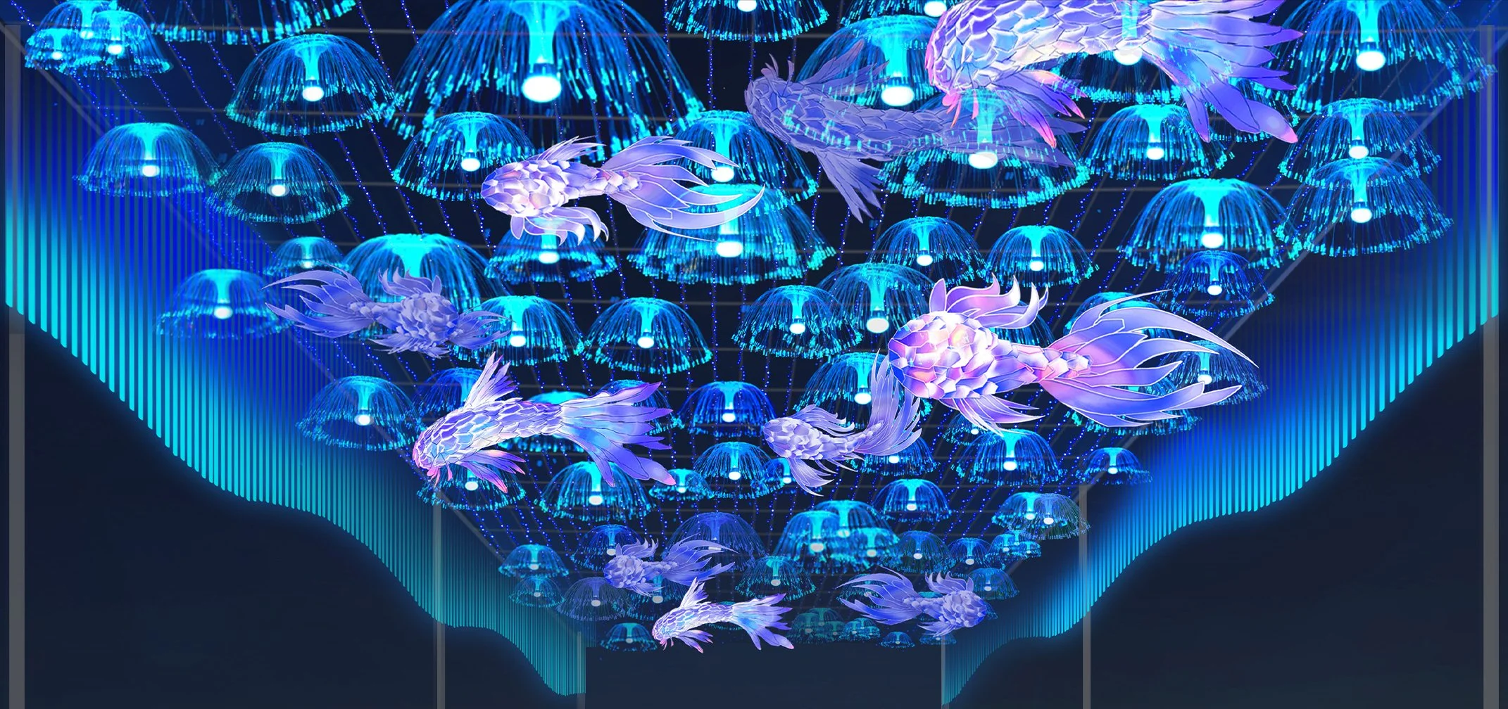Festive food by and cocktails surrounded by a mesmerizing wonderland of glowing lanterns.